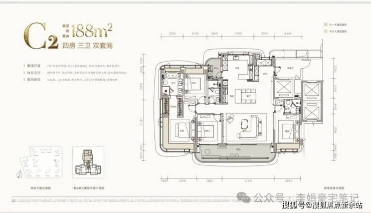 约188㎡(四房三卫双套间):宝中“六边形战士”。集核心地段、顶尖配套、实用空间、优质景观、央企品牌于一身,几乎没有短板,预计将成为竞争最激烈的户型。