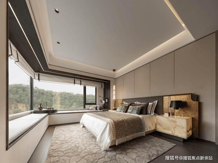 主卧270°观景飘窗,躺在床上也能实现“环幕赏景”。