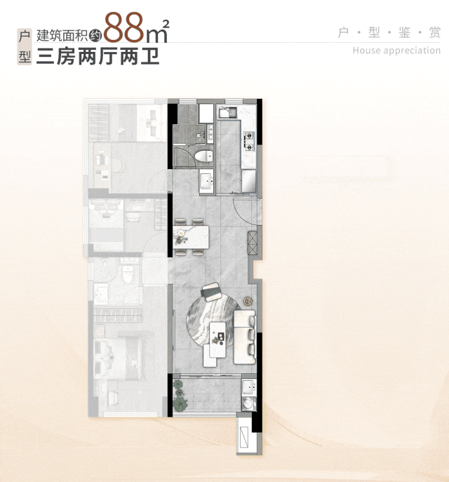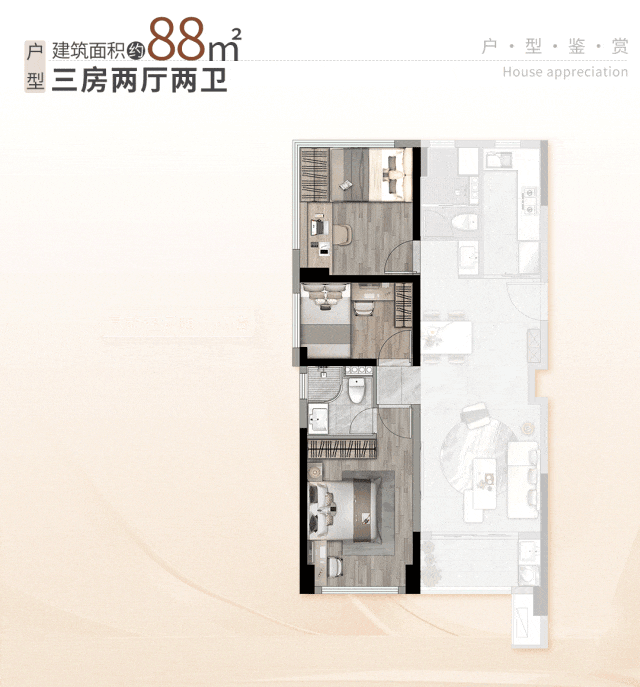 建面约88㎡三房,用空间魔法告诉你:房子不是容器,是生活导演。