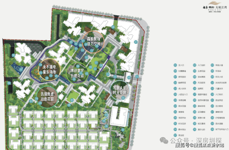 【五感花园】:通过“落笔生花、声声入耳、芬芳馥郁、百味草园、自然之触”功能区域打造,充分调动每位业主“视、听、触、味、嗅”五种感官感受;