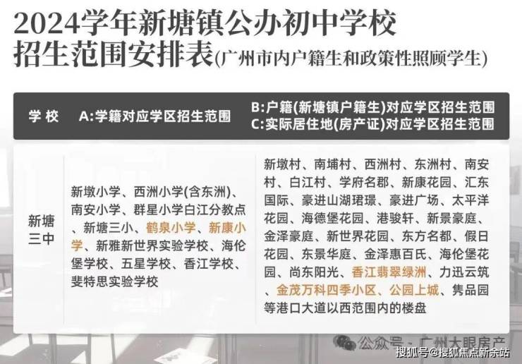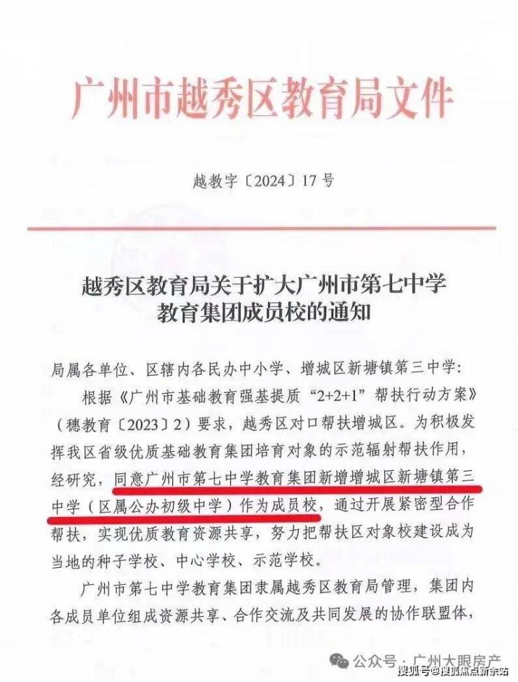 目前对口的中学是新塘三中,新塘三中来头更是不小,作为省级标准公办中学,今年初已被增城广附接管,3月份更是成为广州七中的成员校,拥有了双名优教育集团的加持。