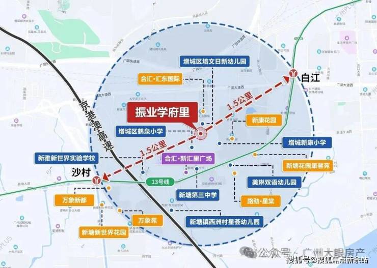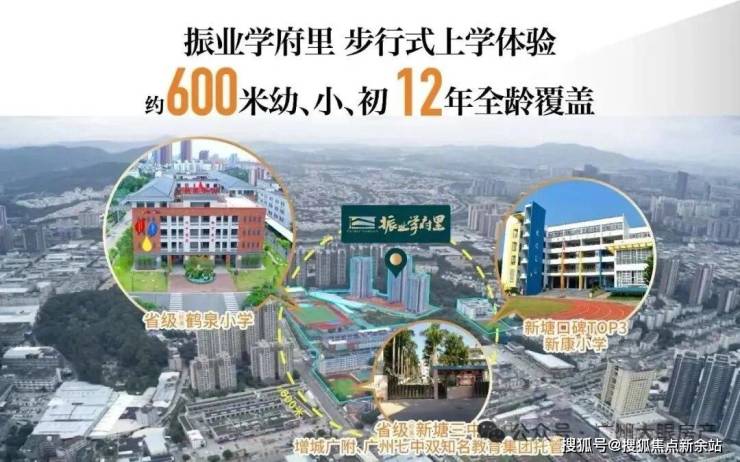 项目600米范围内就分布有新康小学、鹤泉小学、新塘三中以及多所幼儿园。