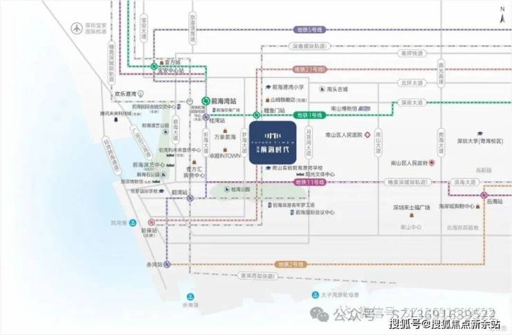 深铁前海时代总都中心邻近地铁1号线鲤鱼门站、毗邻深铁前海国际枢纽中心(在建),海陆空轨多维交通,畅联湾区城际、通达全球主要城市。