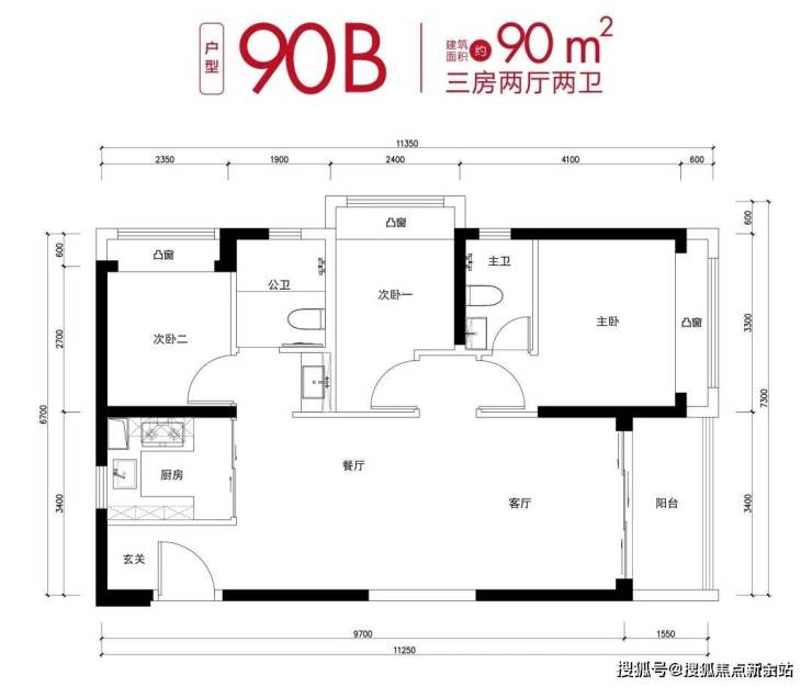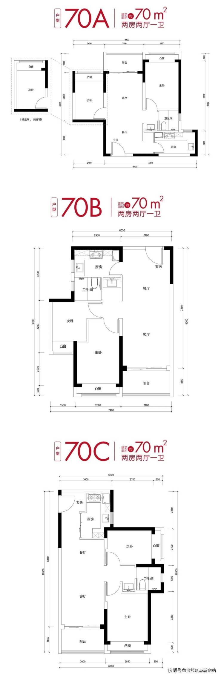 💎户型:建面约70㎡两房、建面约90㎡三房两卫