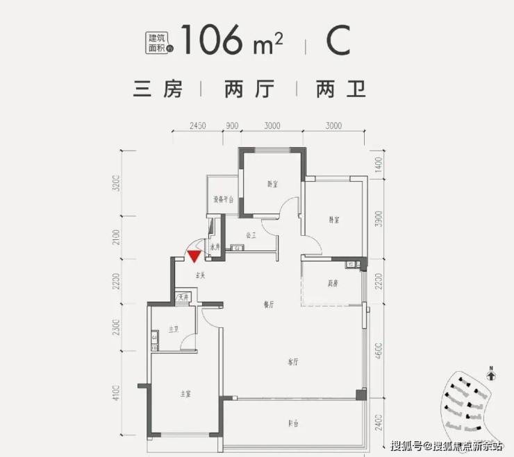 2、106平米三房两卫,C户型