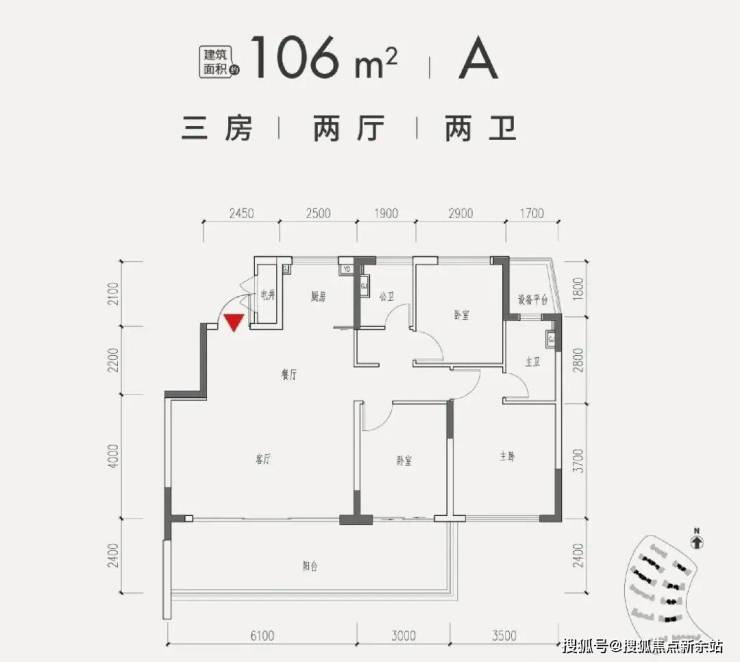 1、106平米三房两卫 A户型