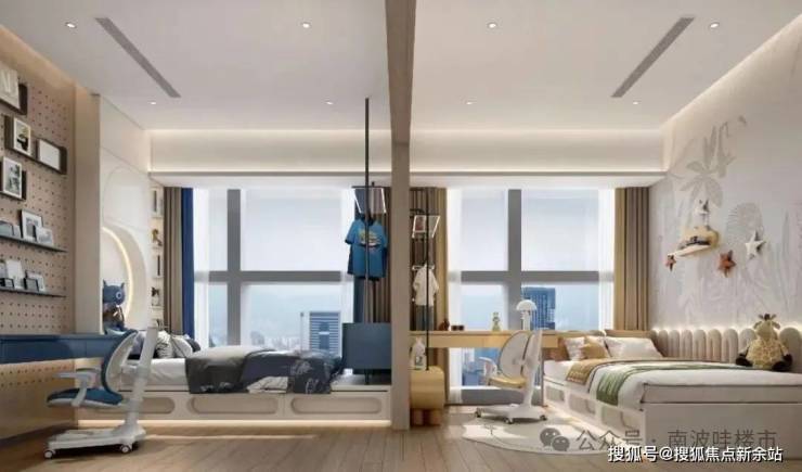 主卧房间可以满足主人起居、收纳、梳妆等多种需求,保证了房间功能的齐全性。另外,主卧均为南朝向,配置有全景落地玻璃窗。如果未来入住在高楼层区域,还可以俯瞰香港北区景观。