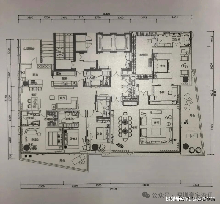 户型:4+1房2厅6卫。