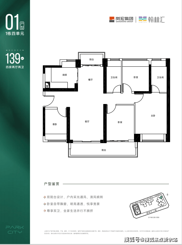 131㎡ 01户型4房2厅2卫南北通透设计,客餐厅一体化,厨房一字型设计,洗切炒黄金动线,四开间朝南,餐厅出阳台,主阳台连通次卧,室内通透;1栋4单元东南朝向。