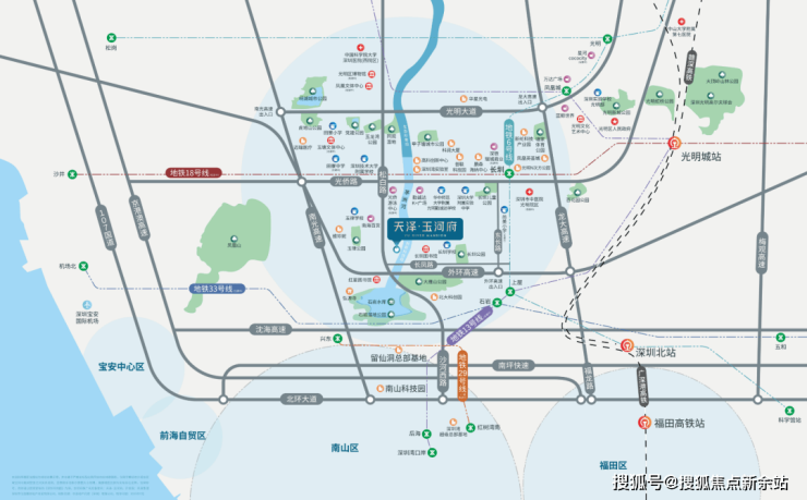 1公里范围内聚集6大学校,自身配建9班幼儿园,华中师范大学附属光明勤诚达学校、玉律学校、长圳学校、深圳技术大学附属学校(光明)、深圳实验光明学校、深圳光明区高级中学环伺。注:学区划分以光明区教育局当年最新公布为准,开发商不做入学承诺。