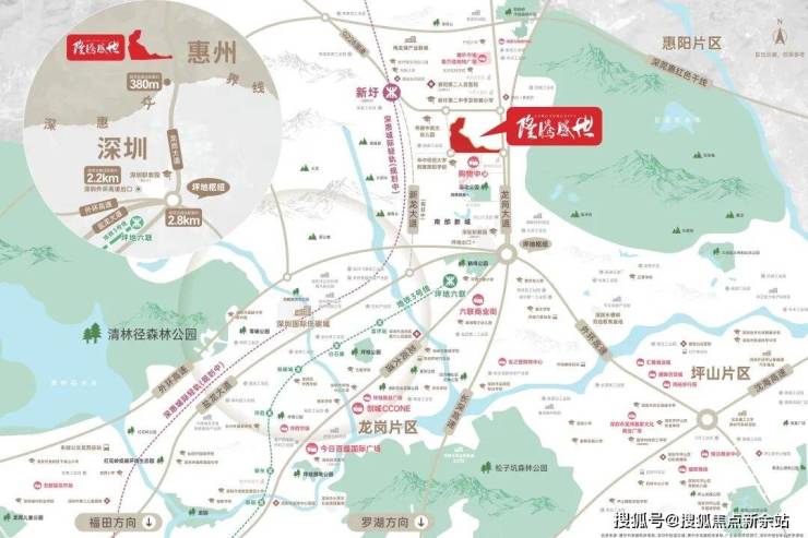 隆腾盛世,位于惠阳新圩,龙岗大道与东风路交汇处,雄踞深圳东进战略要地。新圩紧邻龙岗坪地街道。项目距离龙岗坪地仅一路之隔。享受着深圳的交通辐射红利。