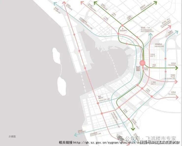 项目坐落于前海桂湾片区二单元03街坊,临海大道和滨海大道交汇处,距离地铁5号线桂湾站仅约200米。这一地理位置的优势不仅在于当下,更在于未来——毗邻亚洲最大交通枢纽之一的前海综合交通枢纽,汇聚“9+2+1”海陆空立体交通网络。