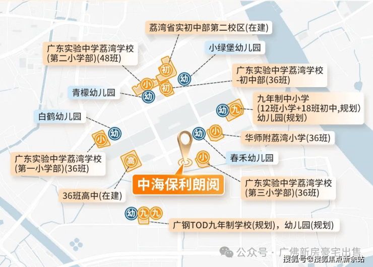 【教育配套】一路之隔就是广东实验中学荔湾学校第三小学部(简称“省实三小”,已于2022年9月开学),周边有省实一小,省实二小,华师附小,广东实验中学荔湾学校,24年7月中考学霸集中,广州第一梯队;项目自身配建2所中学(一所36班初中/一所36班高中在建中),其中一间已确定为省级名校:广东省实验初中,预计2025年竣工;板块将规划32所学校集群,小学到高中一站式全龄段教育,打造15分钟教育圈。