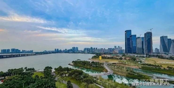 从下方实景图中可见,桂湾河-桂湾公园是桂湾和前湾的分界线,桂湾基本成型,已呈现出一副全新的现代化大都市面貌。