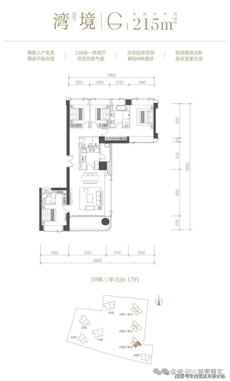 三期首批推出的是55-60栋,约270套,其中192㎡4房3卫有106套,209㎡4房4卫有82套,247㎡4房4卫有82套,备案均价9.9万/㎡,2023年12月开盘,开盘当天实现“日光”!