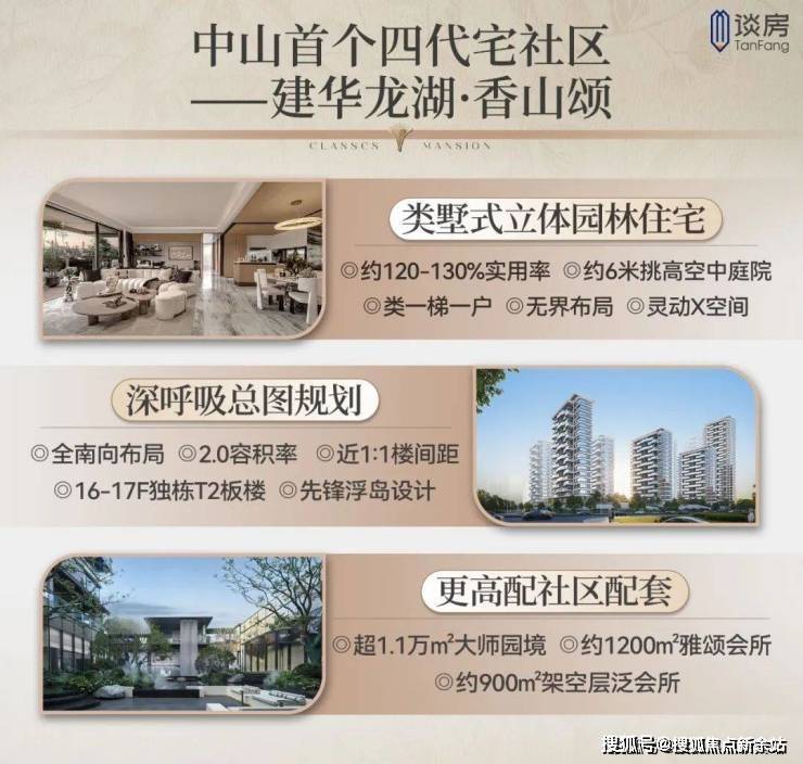 建华龙湖·香山颂,不仅是石岐首个四代宅,也是中山首个四代宅。预计4月底开放售楼部。项目占地面积约3.1万平,容积率仅2.0,建有9栋小高层+3栋高层,全是现一梯一户设计,户户全明采光,享270°低密环幕视野,部分南向户型更望一线湖景。