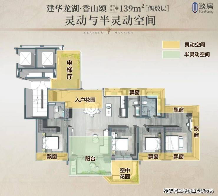 以下为香山颂约139㎡的高能应用,实用率至高130%(不含电梯厅)。
