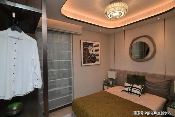 客厅旁的睡房贯彻单位矜贵格调,以水晶挂灯及艺术摆设作点缀,房内空间宽敞,可中置双人大床三边落床,两边则摆有深色床头几,另一端则放置放置高身衣柜。