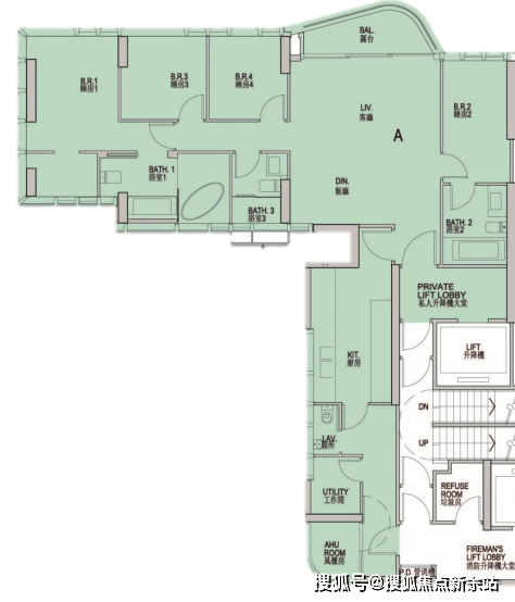 开放的示范单位为1座11楼A室,实用面积1,584方呎,原则为4房双套房间隔,示范单位改造为3房双套房开则。