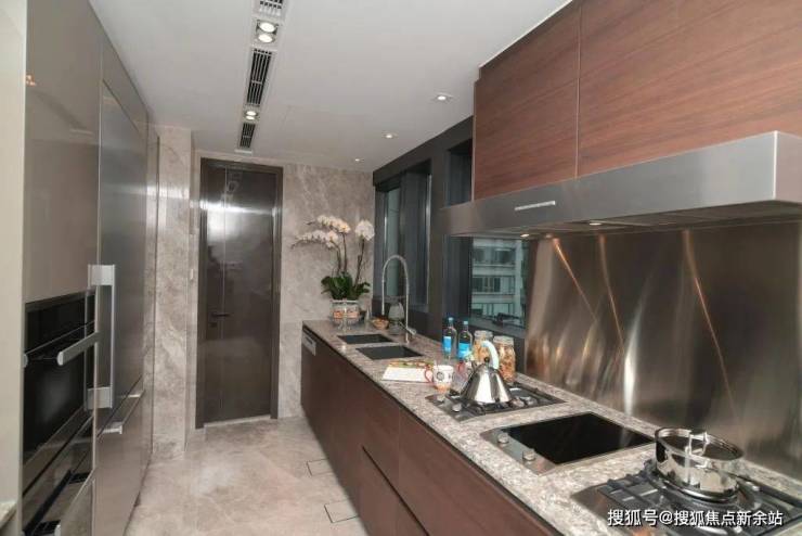 设于大门旁的厨房采长形开则,工作枱面空间充足,且设备齐全,配备多件家电及厨柜,可在舒适及空间充裕的环境下享受入厨之乐,厨房内接工作间。