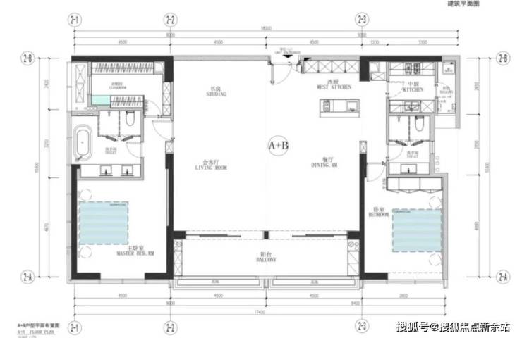 A+B户型:220平方米,两房两厅