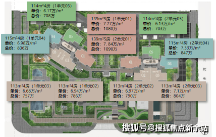 115㎡:1单元05(6.17万/㎡)>2单元05(6.13万/㎡),价差约400元/m²;