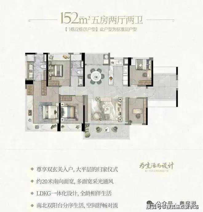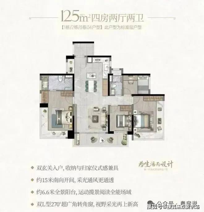 且配备双玄关入户、双阳台、 270°观景飘窗等配置。