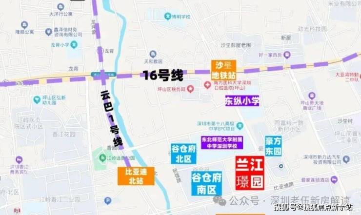 交通配套:项目距离16号地铁线“沙壆站”约400米,坪山云巴1号线“比亚迪北站”约900米,另外南坪快速出入口距离约1.5公里,1小时可快速通达南山。