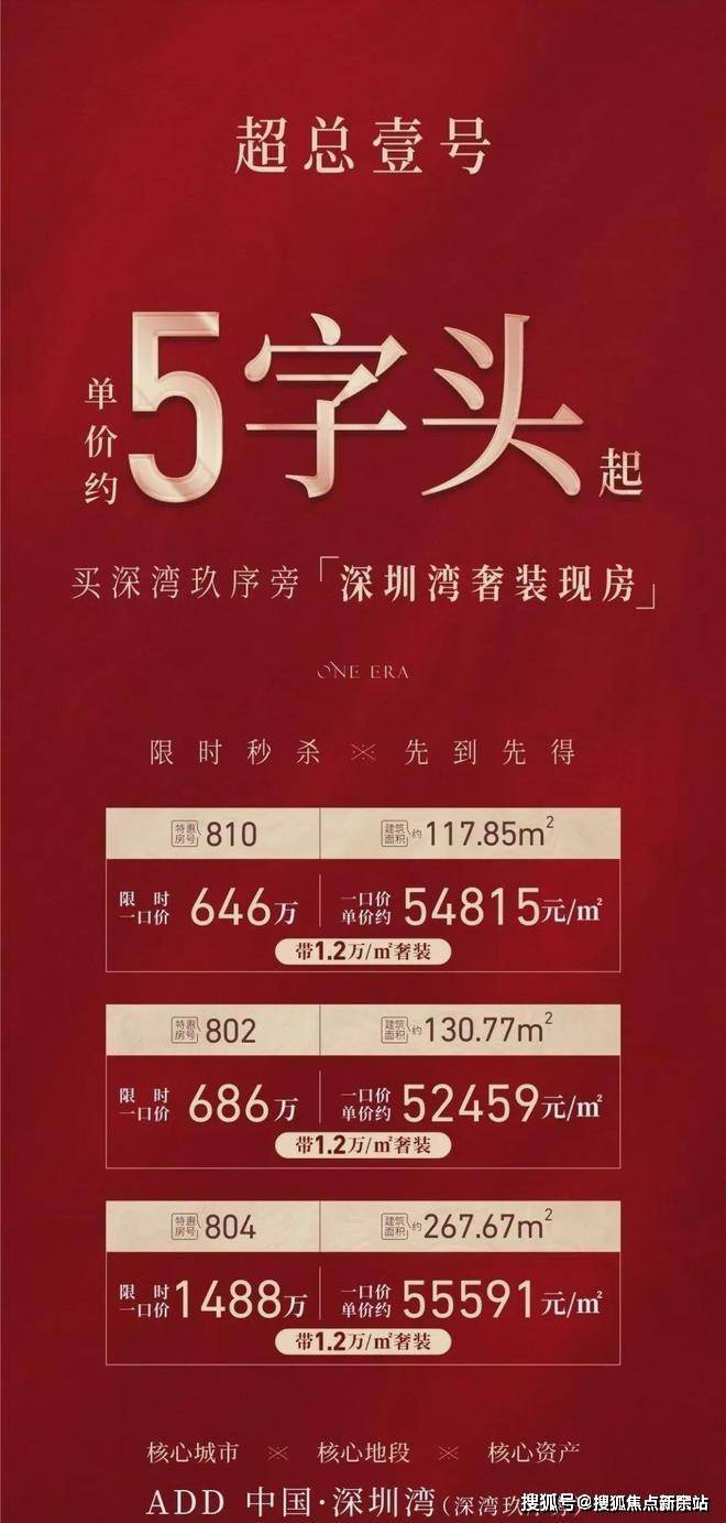 单价约56666元/㎡起,带1.2万/㎡奢装,仅1/4中海深湾玖序价格,买深超总稀缺奢居大平层!