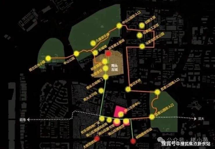 7大枢纽站,直线距离约1公里内,享南头古城、中山公园、深大北、南山、规划新站等7大枢纽站;
