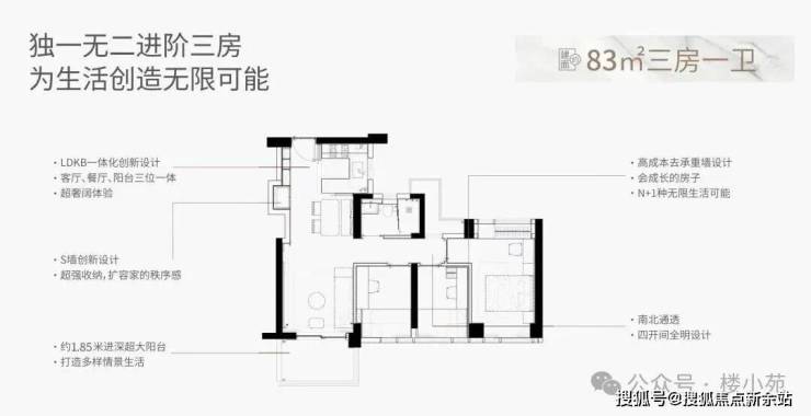 83m三房一卫,折后总价约616-658万