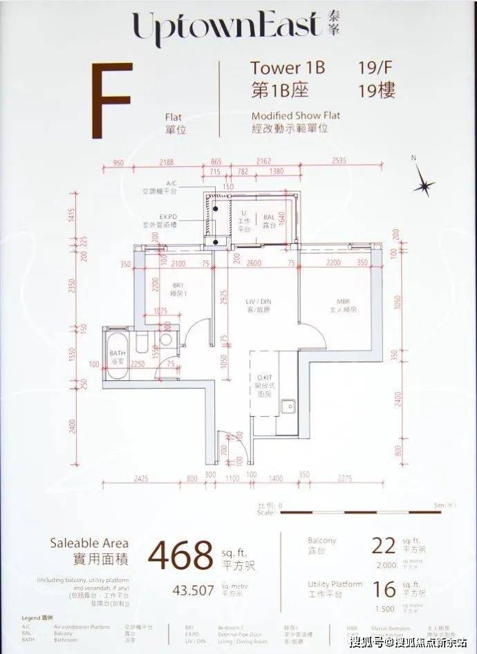 1B座19楼F室(468尺2房单位)