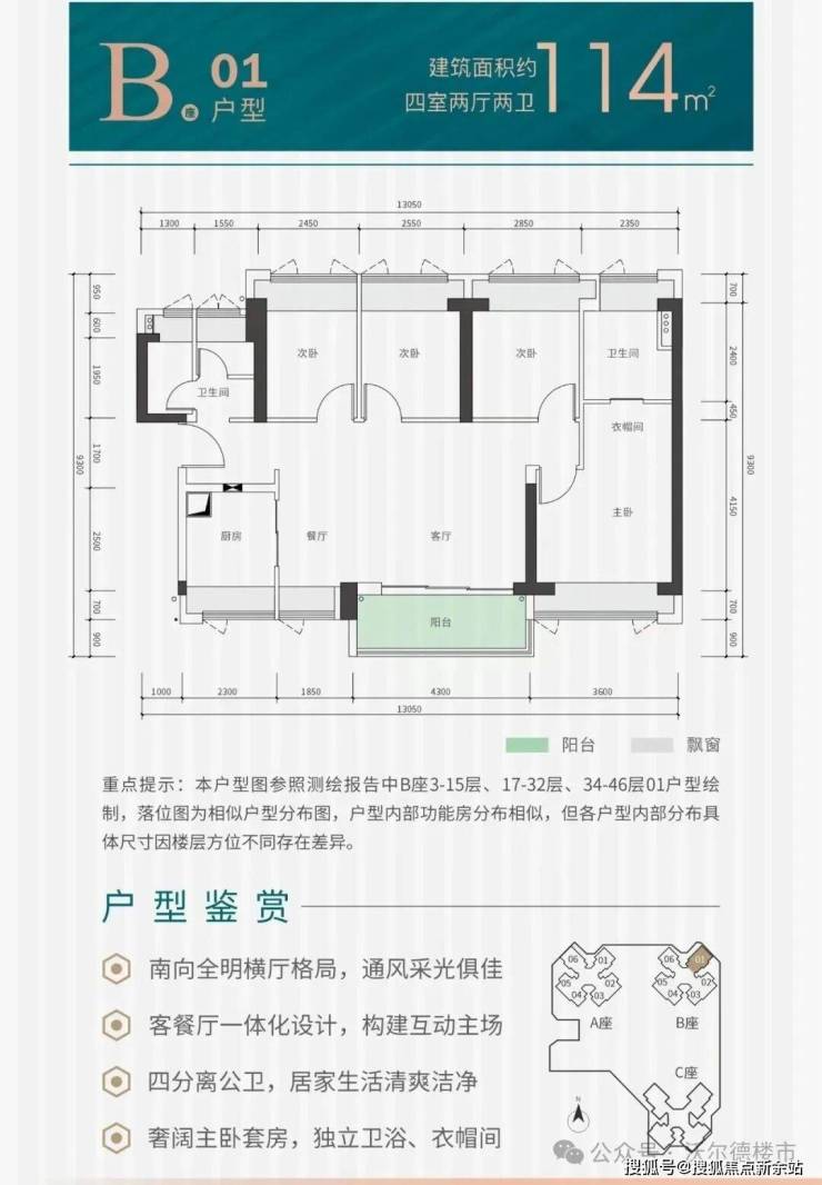 项目户型:建面约82-115㎡三至四房