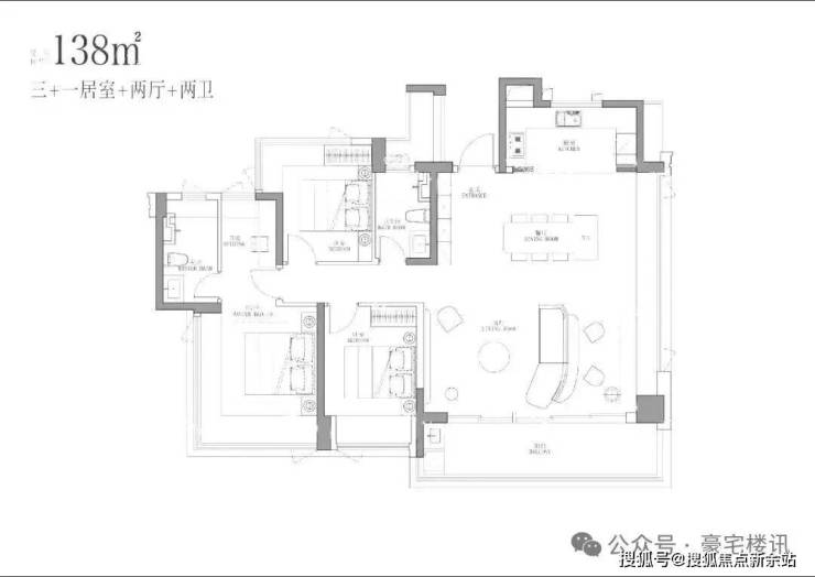 住宅面积段是面积有约120-140-190-280㎡户型,以通透户型为主,据悉最大的280㎡为顶奢设计,双全景舱结构,四个阳台。1栋和2栋为一层两户大平层,3-4栋为一层四户改善型住宅。