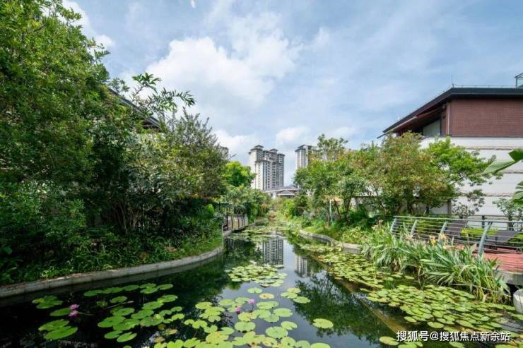 整座社区如同一座5A级森林景区,目之所及有金桂、大王椰子、蒲桃、水石榕等全冠名贵树木,蜿蜒水系静静流淌,置身其中,静谧又不失活力与生机。