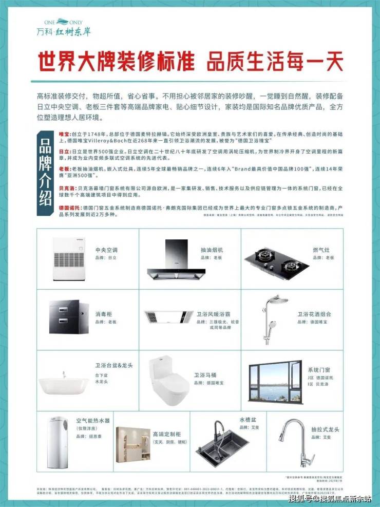 在高达96%实用率的产品力之下,更难能可贵的是,万科红树东岸洋房产品也是带精装交付,所使用的品牌皆为国际一线优质品牌的高端产品线,价格超市面上开发商常用品牌的2000+元/㎡,为您的新家省下不小的装修成本,同时优质品牌也能让您省心又安心!