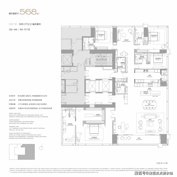 面积设计:300、400、460、570、1000平米纯粹大户型,空间方正,极致私密。