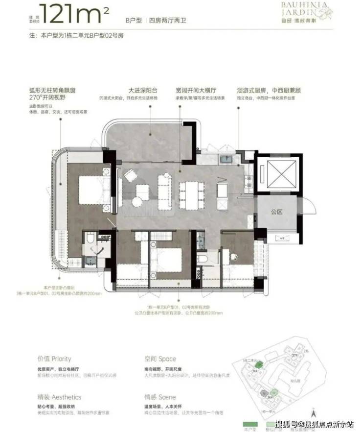 3.1米层高、4梯5户、户户独立电梯厅、弧形大阳台与270°弧形无柱转角飘窗,再叠加新规带来的高使用率。