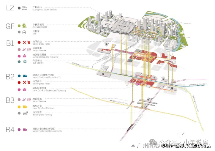 1、南站中轴广场:中轴广场规划总建筑面积约 27 万方,项目由地面绿地、公共服务设施和地下交通枢纽(其负一层为超大体量的26 万方商业广场(花城汇南站),相当于5个天河城的规模组成,辐射范围广。