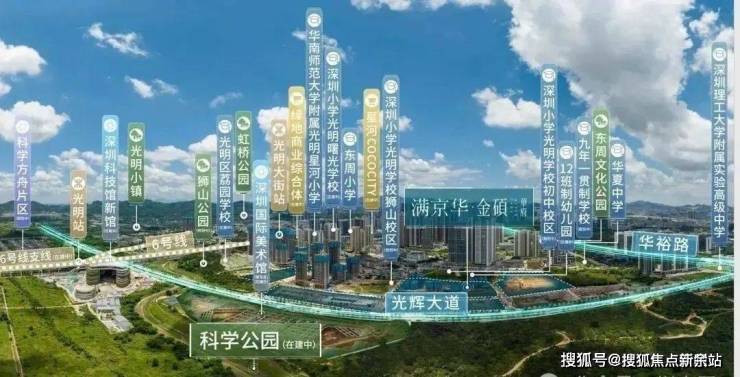 满京华·金硕项目直面占地约208万㎡的科学公园(在建中),近享深圳国际美术馆(在建中)、深圳科技馆新馆(在建中)、科学城体育中心(在建中)、光明文化艺术中心等市级文体配套;还坐拥狮山公园、约9.4万㎡的东周文化公园,约10万㎡的开明公园,约56万㎡的新城公园等丰富绿色生态资源。