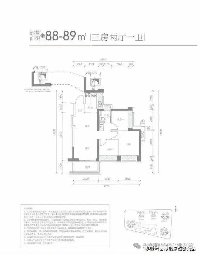 【产品户型】建筑面积约85-88m²三房两卫、建筑面积约110-114m²四房两卫、建筑面积约113-119㎡四房两卫