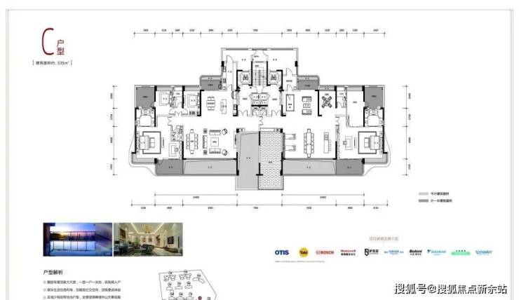 535m²户型图:五房四厅五卫 南向通透(10号楼,毛坯带泳池)