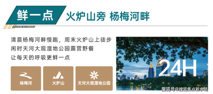 自然景观资源丰富,地块北靠火炉山,东临杨梅河,紧邻大观湿地公园。火炉山提升居住环境品质,杨梅河提供休闲散步场所,大观湿地公园带来清新空气,让居民享受 24H 健康鲜氧生活,实现背山藏风、临水纳气的宜居体验。