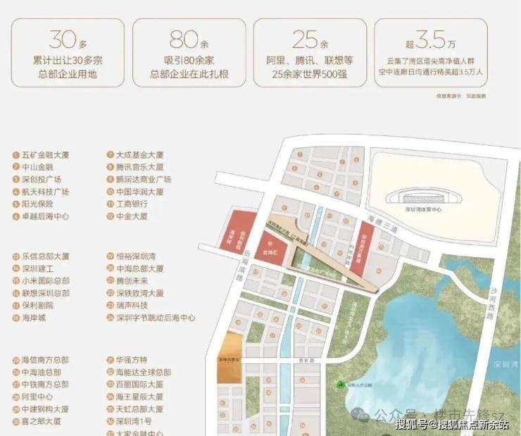 产业与总部经济核心: 项目地处深圳湾后海总部基地,是粤海街道的精华所在,周边汇聚了众多科技巨头与知名企业总部,奠定了其强大的高净值人群基础。