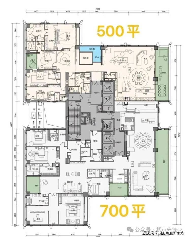 ③超高区58F起(200米以上)是约500-700㎡顶级大平层;