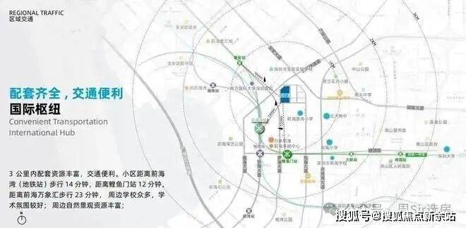 项目距离约1号线、5号线、11号线三线交汇的前海湾站约760米,约800米可到1号线新安站;未来依托在建的深铁前海国际枢纽中心,将汇聚地铁、城际、口岸等多种交通方式,实现南山福田及大湾区核心城市的快速通勤。