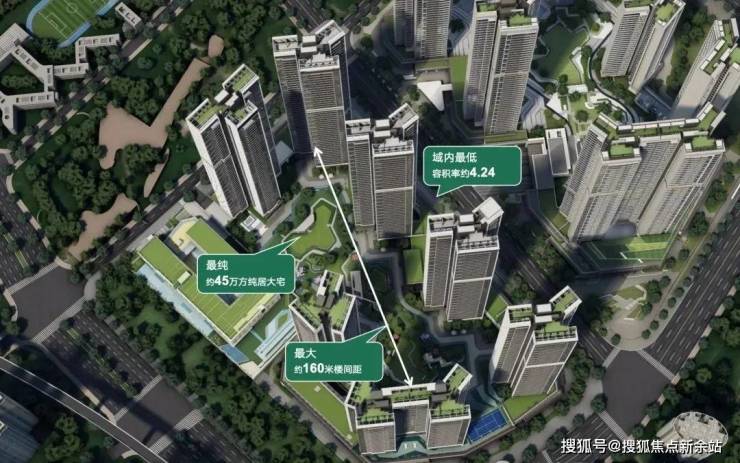 【奢阔楼间宽距】近160米超宽楼间距,最大化楼间距保证了视野的开阔度和充分的通风采光,车位比1:1,区域内最低容积率约4.24,片区稀缺2梯4户/2梯5户/3梯4户/3梯3户,高私密性,高舒适性。