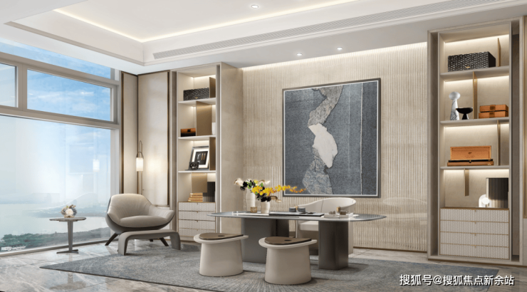 以前卫姿态礼赞现代主义,客餐厅也是定制艺术展馆,在家中与艺术品、江潮来一场通感体验之旅,是江景奢宅生活主场,更是江岸资产收藏天地。