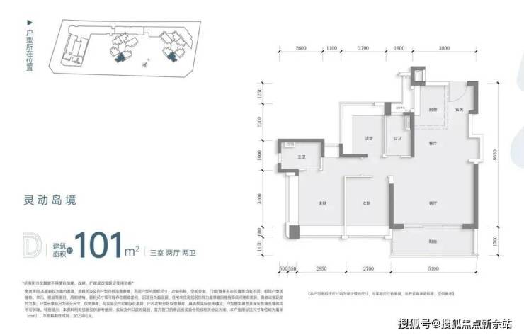 建面约101㎡三房两卫户型:空间更为灵活,客厅开间做到了5.1米,尺度宽阔,预留了120寸投影幕布点位,观影距离绝佳;主卧面宽约3.5米,将舒适度放大优享舒适生活格局。
