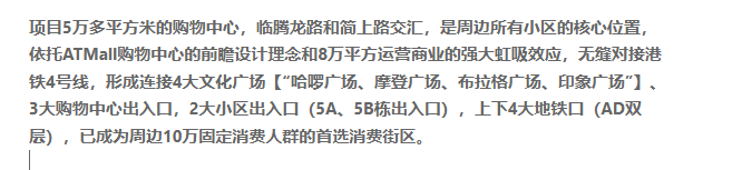 街铺依托ATMall购物中心形成核心的成熟商圈,设施完善,规范运营,成熟街区;